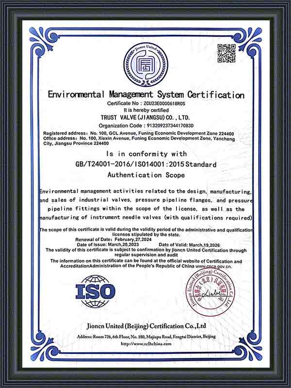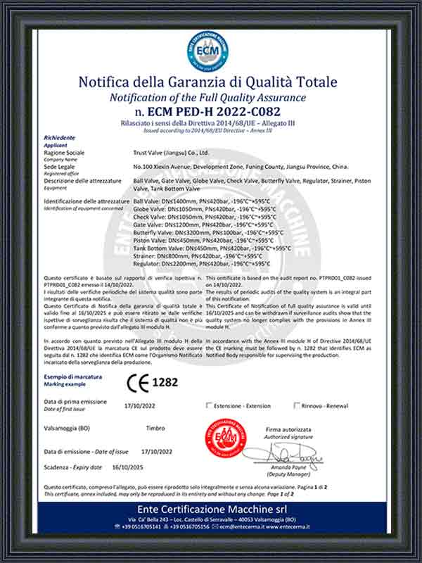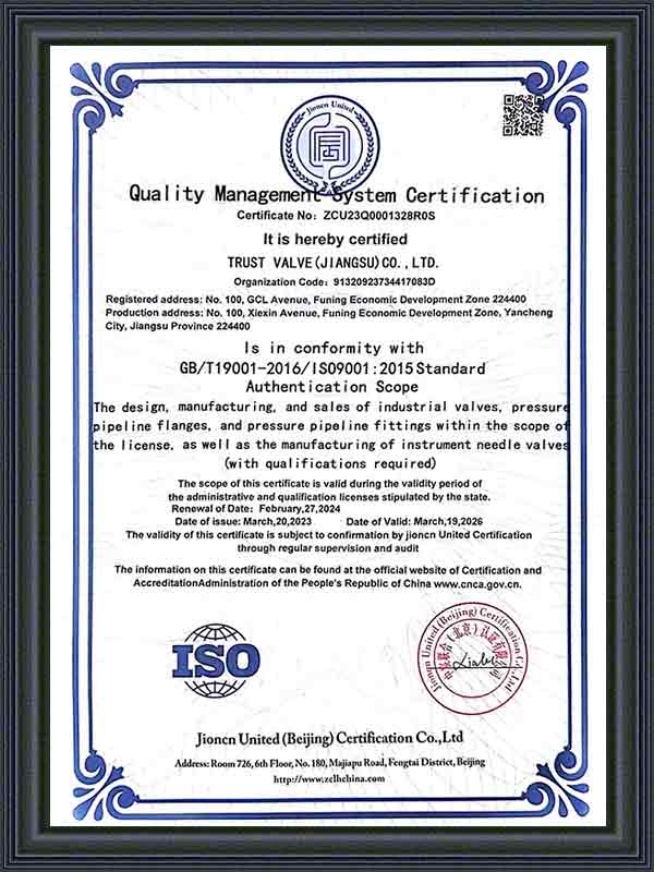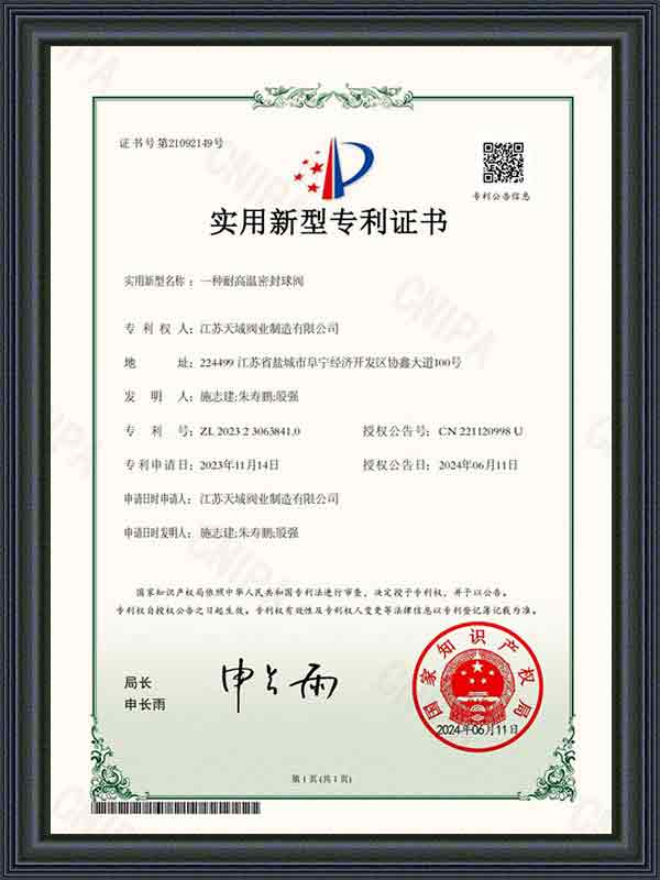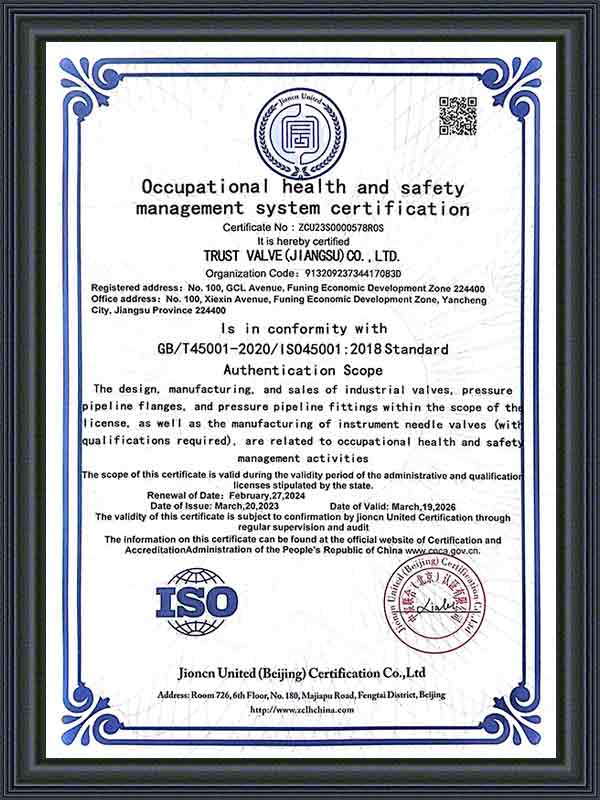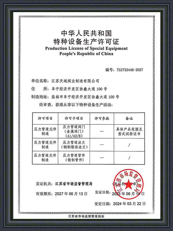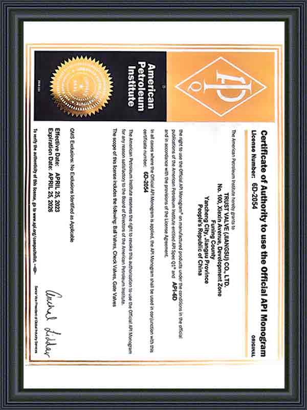 الآن، حصل برنامج إدارة ERP الذي تستخدمه الشركة على شهادة ISO9001 TS، HSE، EAC، API6D، API602، API624، ISO15848، API607، API 6FA، ISO 10497، TA-Luft، SIL، CE. انتظر سلسلة من الشهادات، والمنتجات الرئيسية هي أنواع مختلفة من صمامات درجة الحرارة المنخفضة للغاية، وصمامات الهدرجة، وصمامات الغطاس، وصمامات متعددة الاتجاهات، وصمامات قاع الخزان، وصمامات الرش وغيرها من الصمامات المخصصة خصيصًا، والتي تستخدم بشكل رئيسي في درجات الحرارة العالية، والضغط العالي، والتآكل القوي، ودرجات الحرارة المنخفضة للغاية، ودرجات الحرارة العالية للغاية وظروف العمل الخاصة الأخرى.